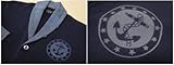 右腕のカラフルな鳥が刺繍されたワッペンや 胸ポケットの模様入りメタルボタンなど パーツ一つ一つもとても丁寧に作りこまれています。