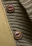 首周り・袖口・裾がニット切り替えの凝ったデザイン。 ヴィンテージ加工が施された首元の木製トグルが ボディのカラーと良くマッチしていますね。
